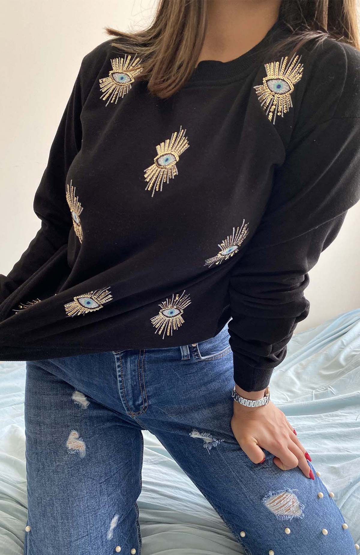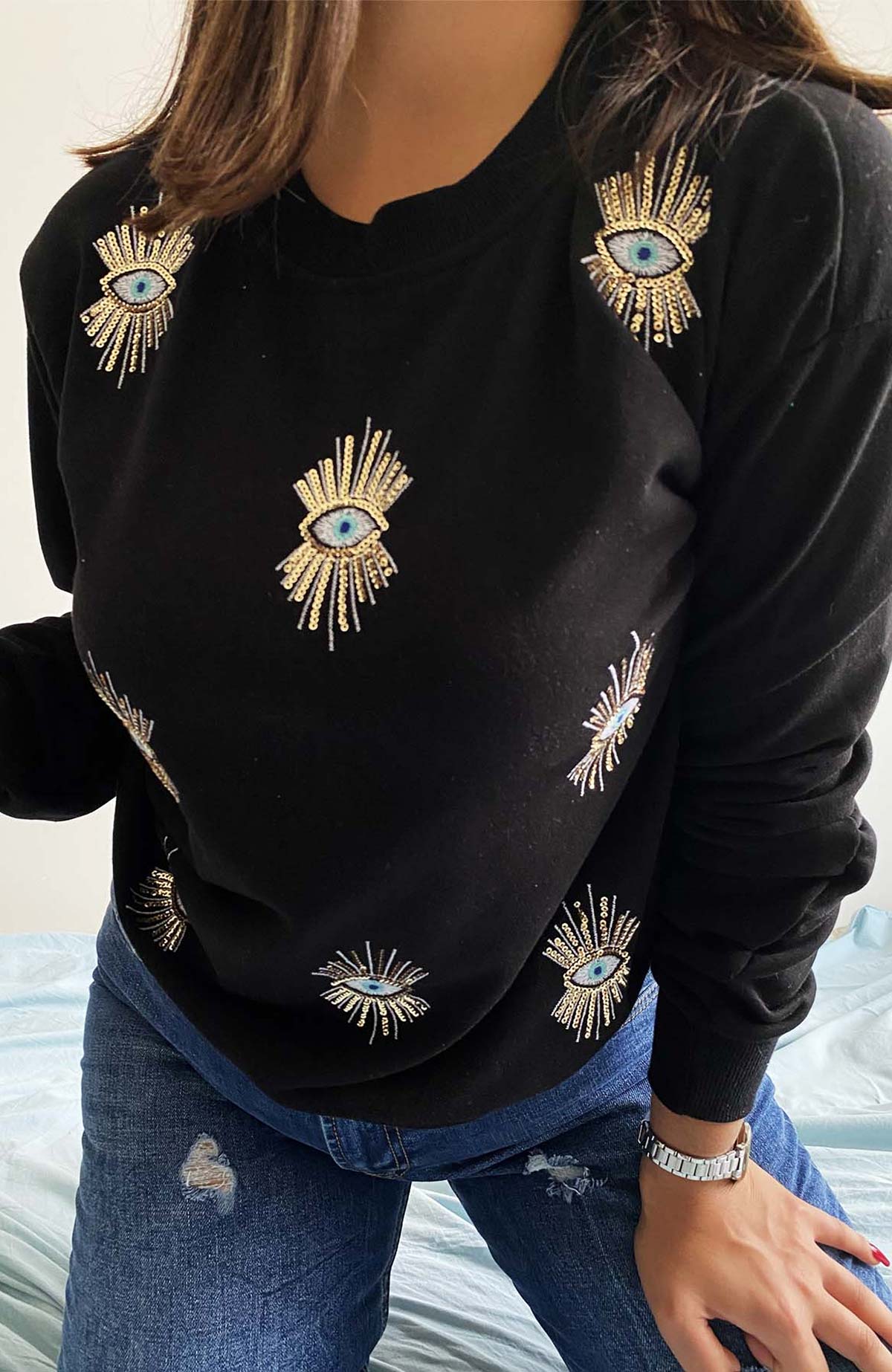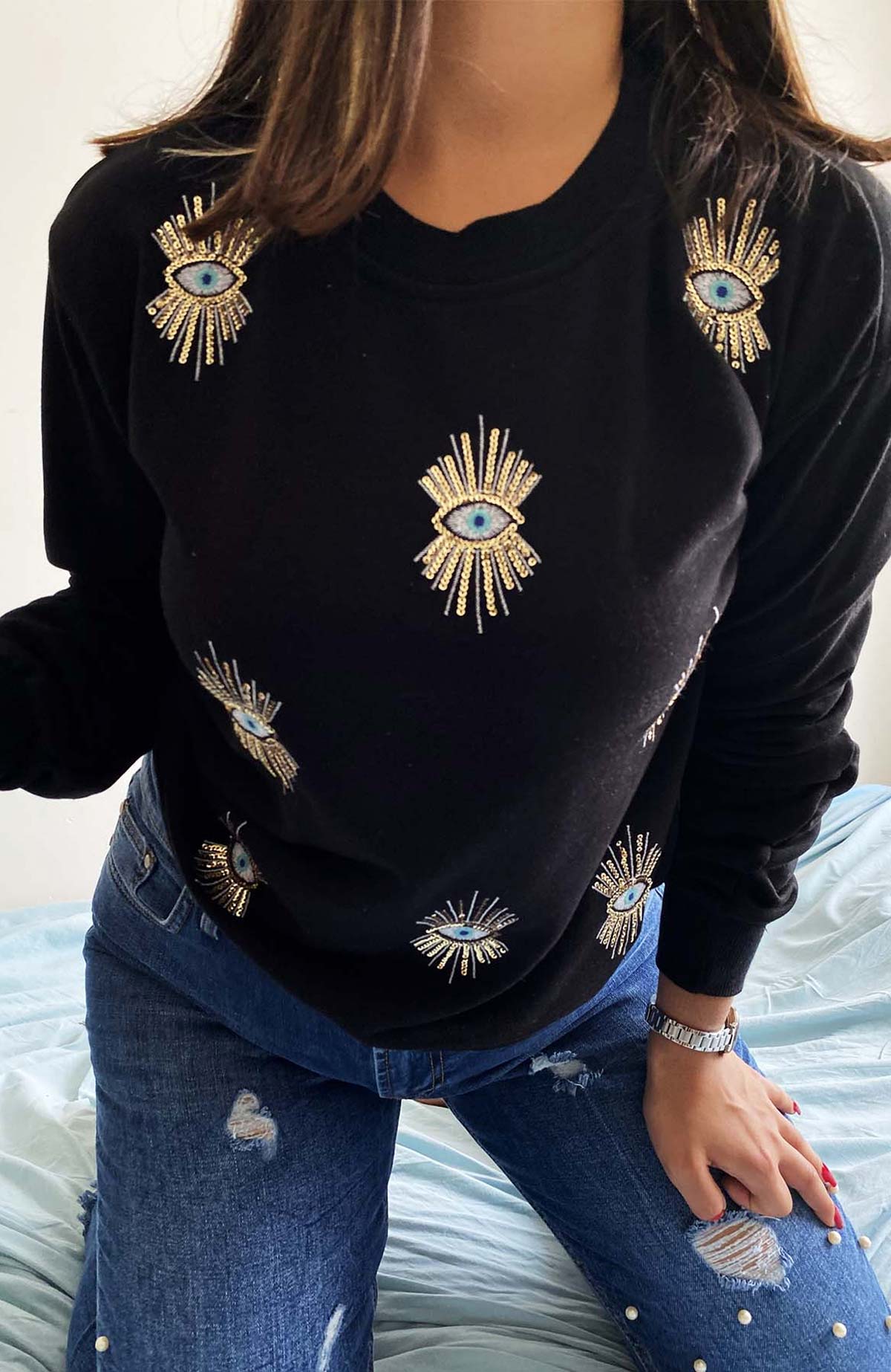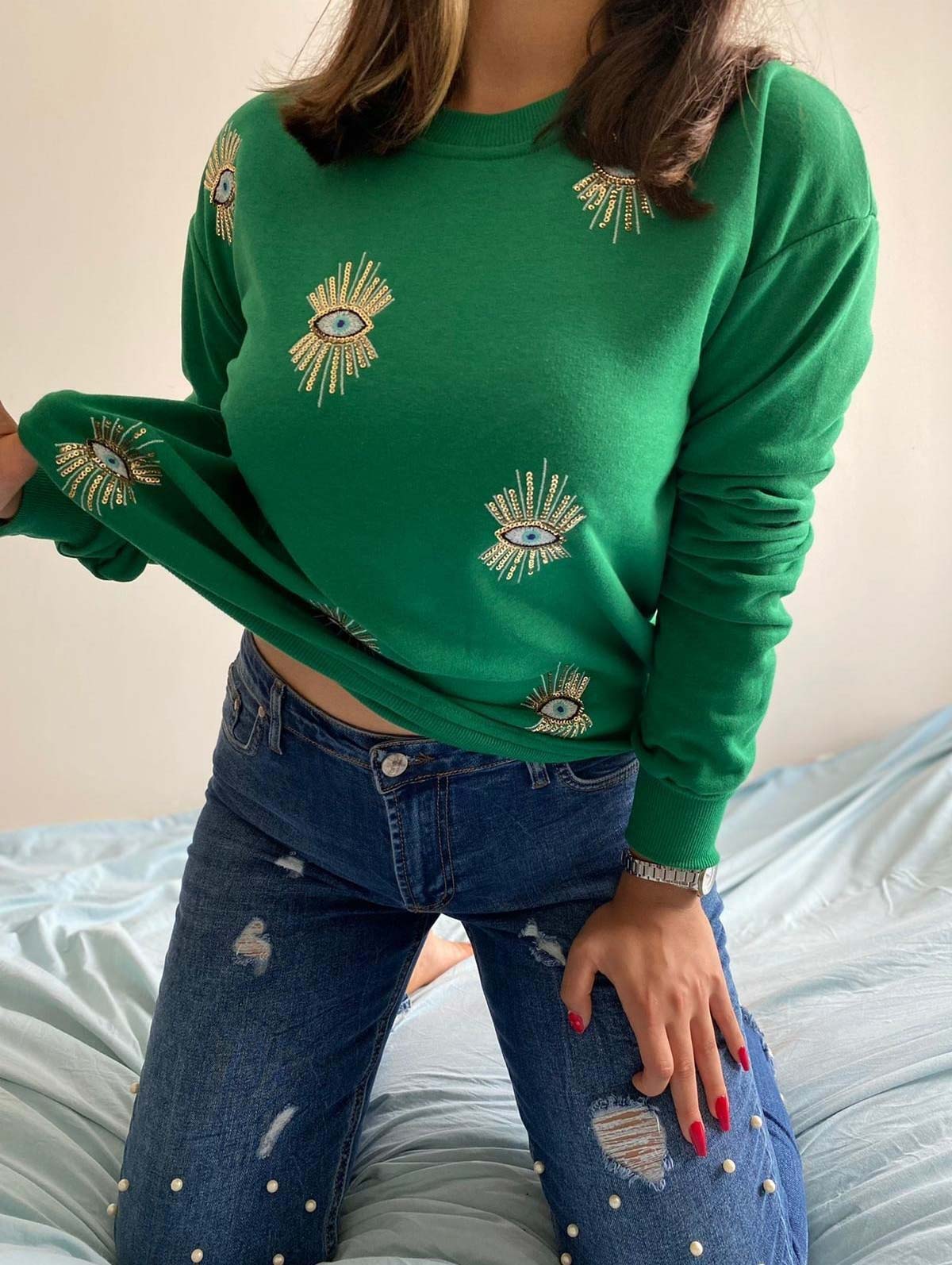 سویشرت زنانه نخی گلدوزی شده با پولک های چشمی برند Laderra یکی از انتخاب های مورد علاقه خانم هایی است که به دنبال ظرافتی شکیل و چشم نواز هستند.