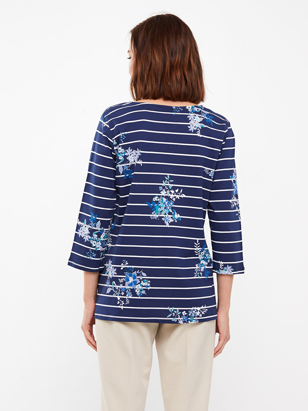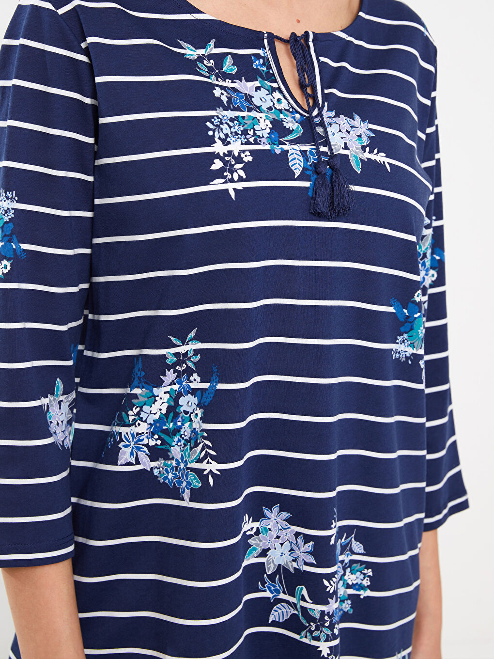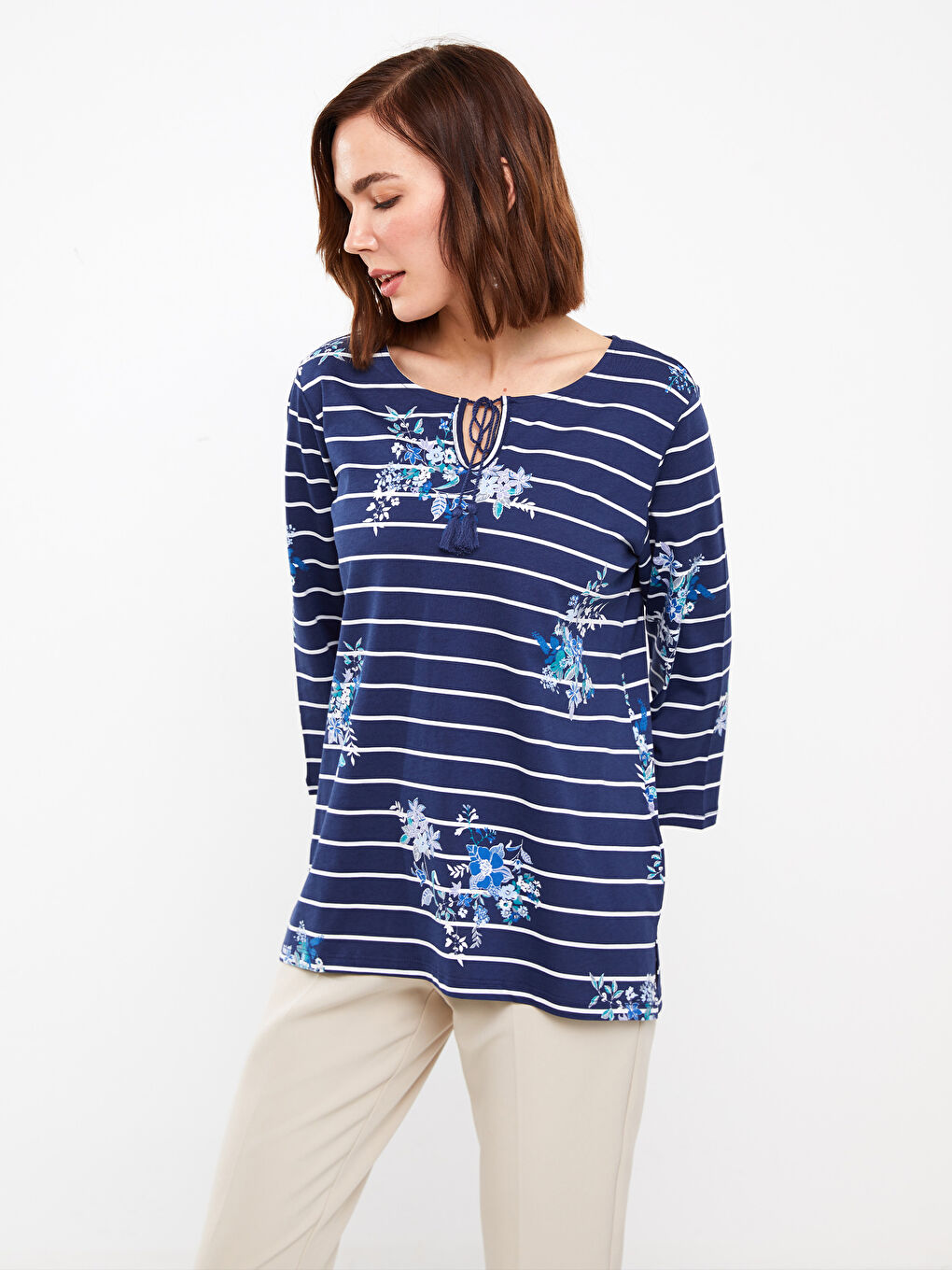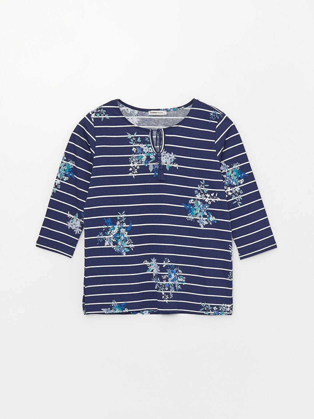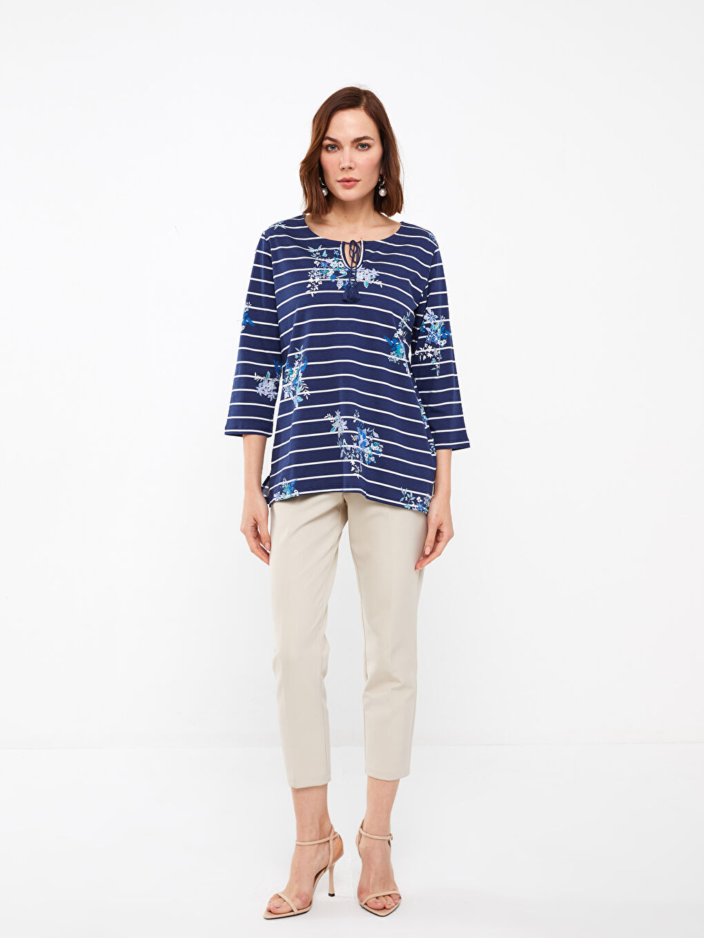 بلوز زنانه آستین سه ربع طرح دار یقه ای گره ای ال سی وایکیکی