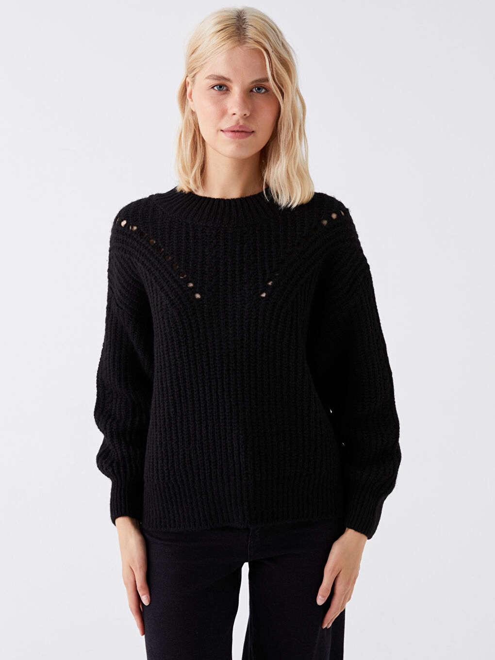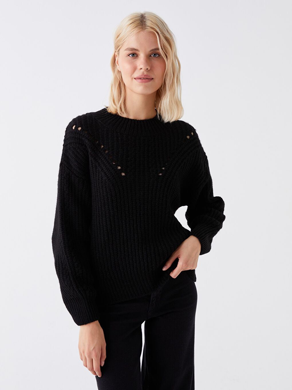 ژاکت بافتنی زنانه طرحدار یقه گرد ال سی وایکیکی