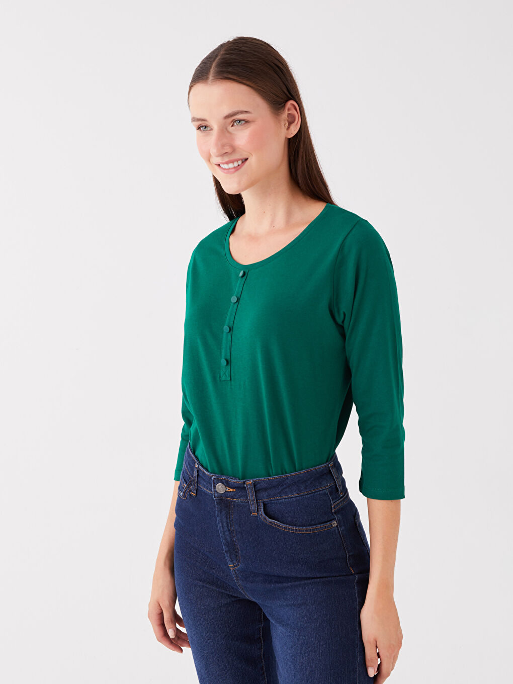 تی شرت ساده زنانه یقه دکمه دار ال سی وایکیکی
