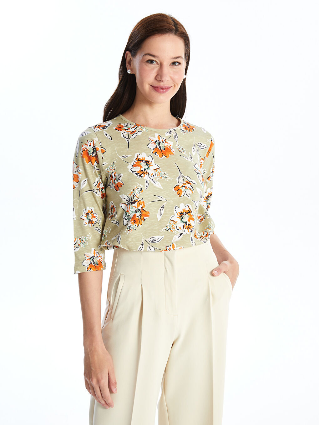 تی شرت زنانه یقه گرد ال سی وایکیکی