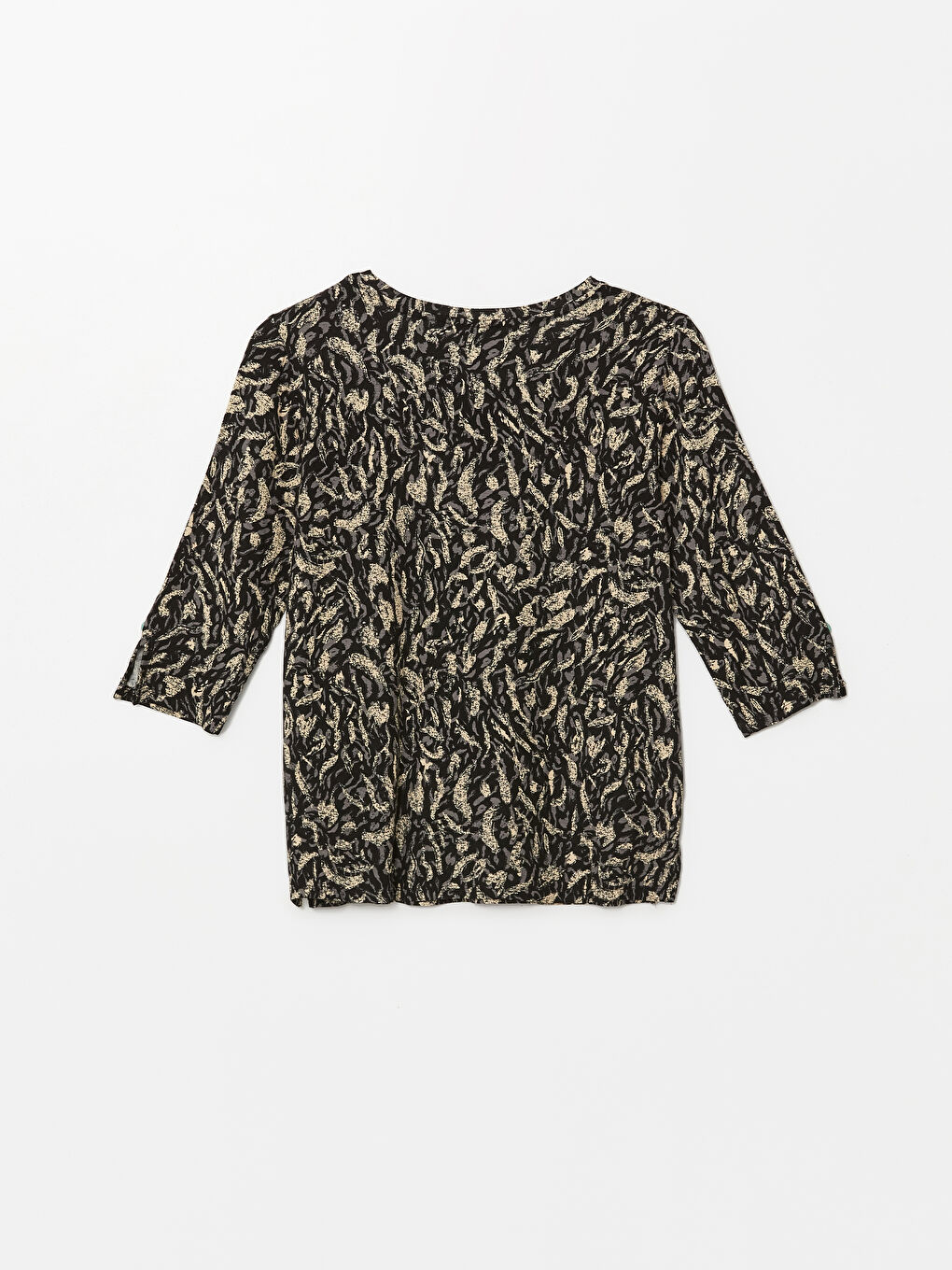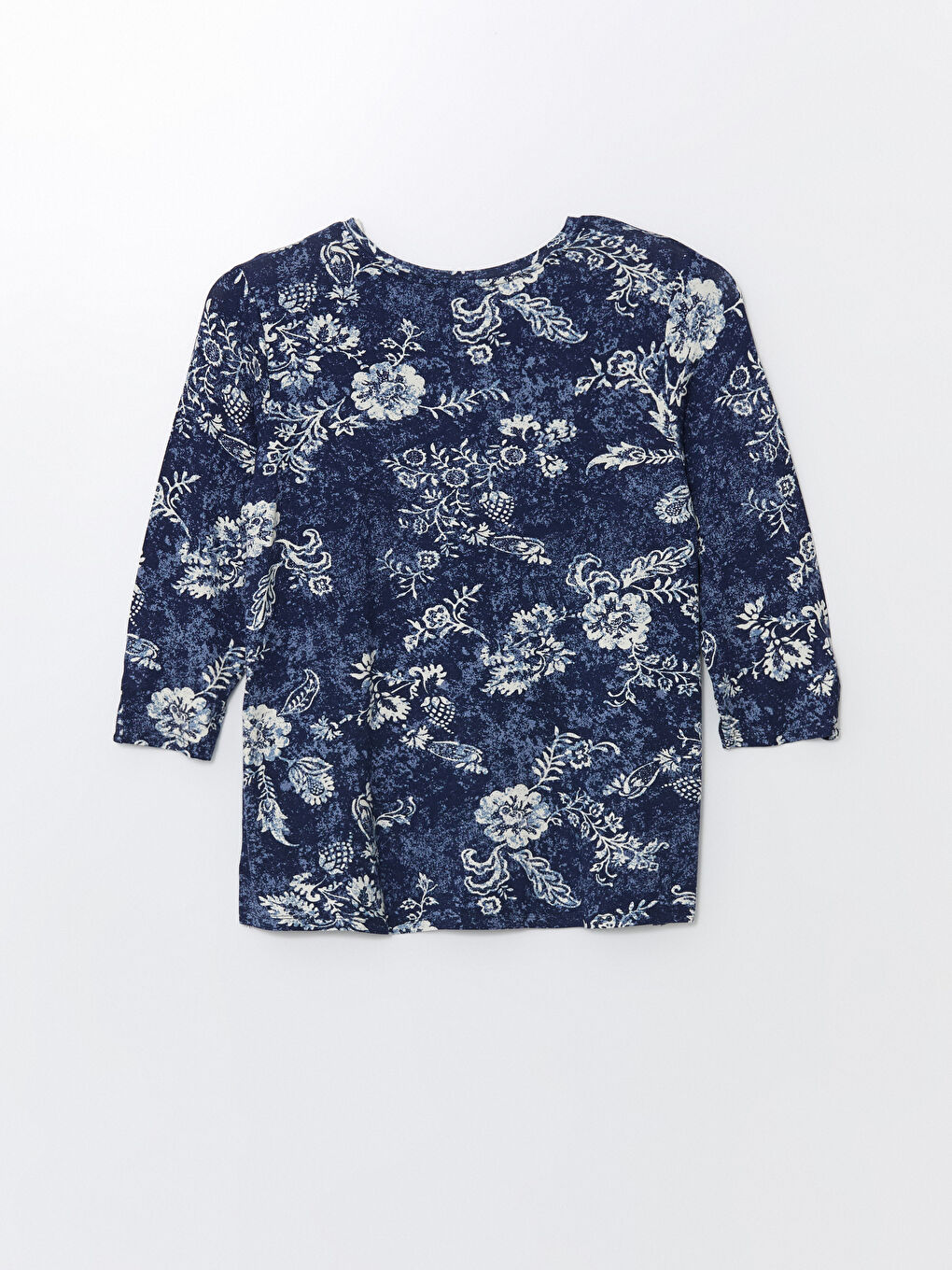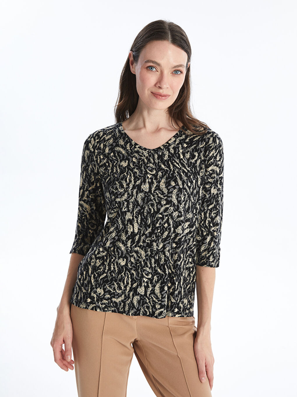 بلوز زنانه آستین سه ربع طرح دار یقه هفت ال سی وایکیکی