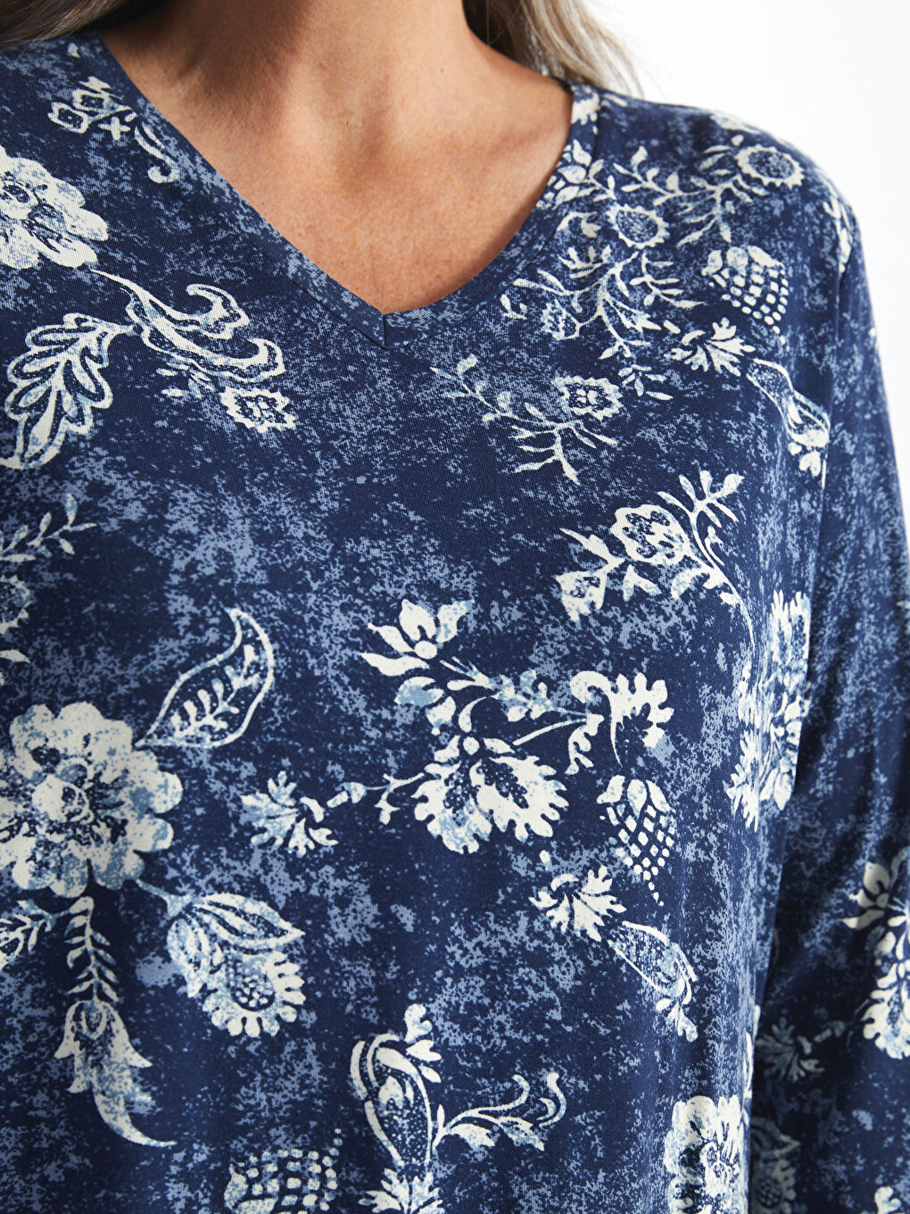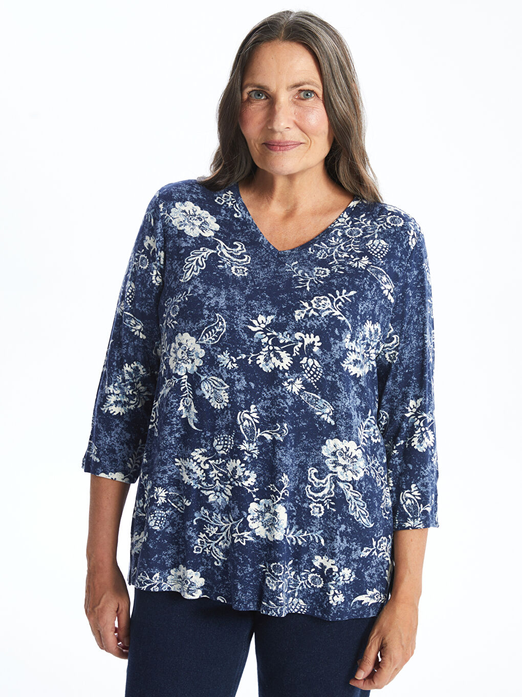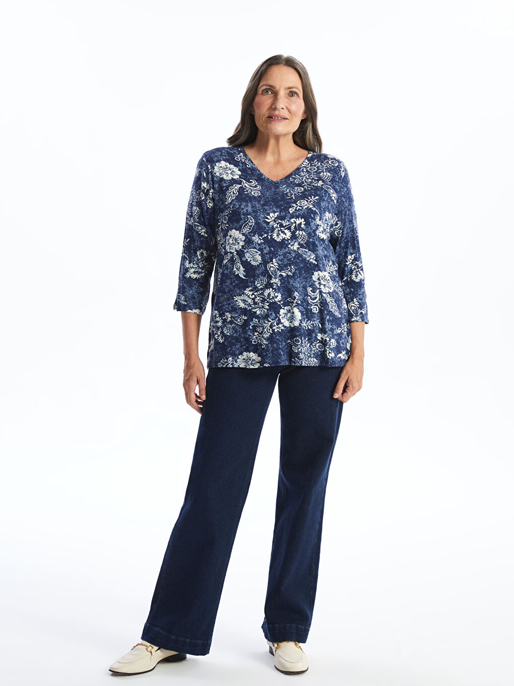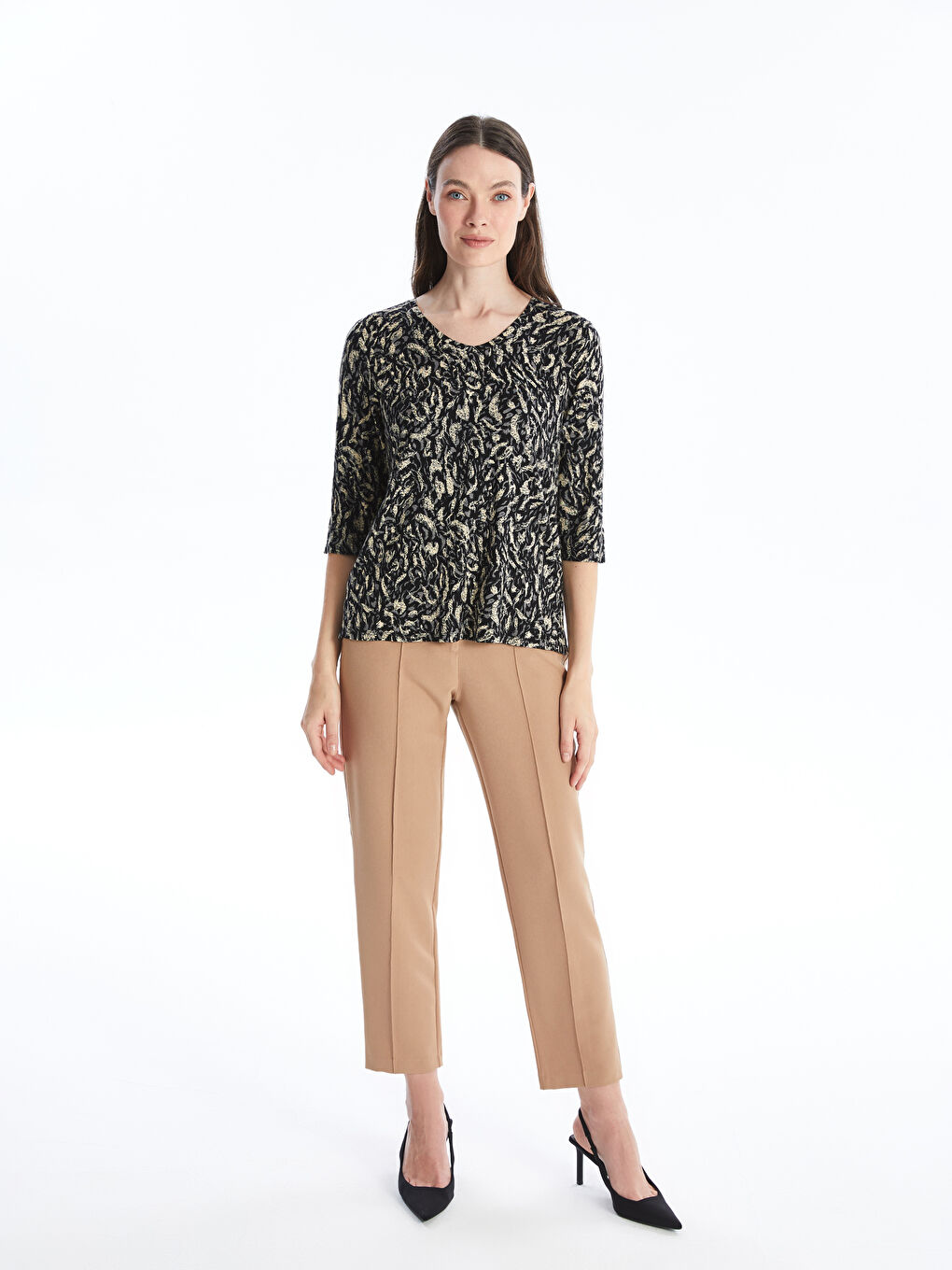 بلوز زنانه آستین سه ربع طرح دار یقه هفت ال سی وایکیکی