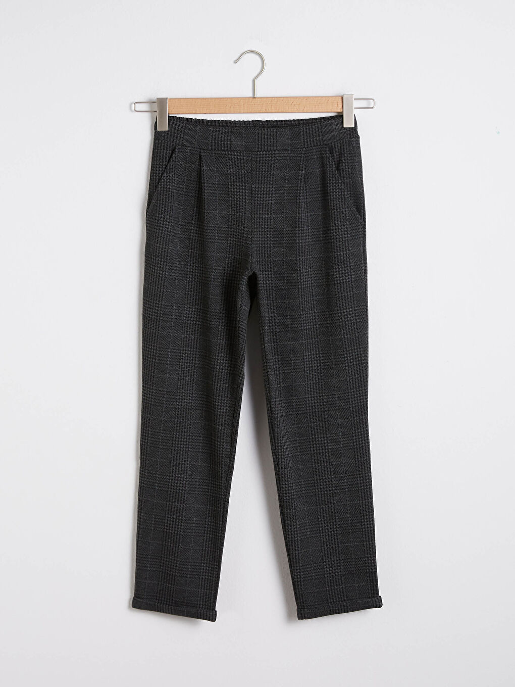شلوار کمری زنانه چهارخانه کشی ال سی وایکیکی از پارچه ضخیم شانه شده دوخته شده و جیب های کناری و پشتی دارد.