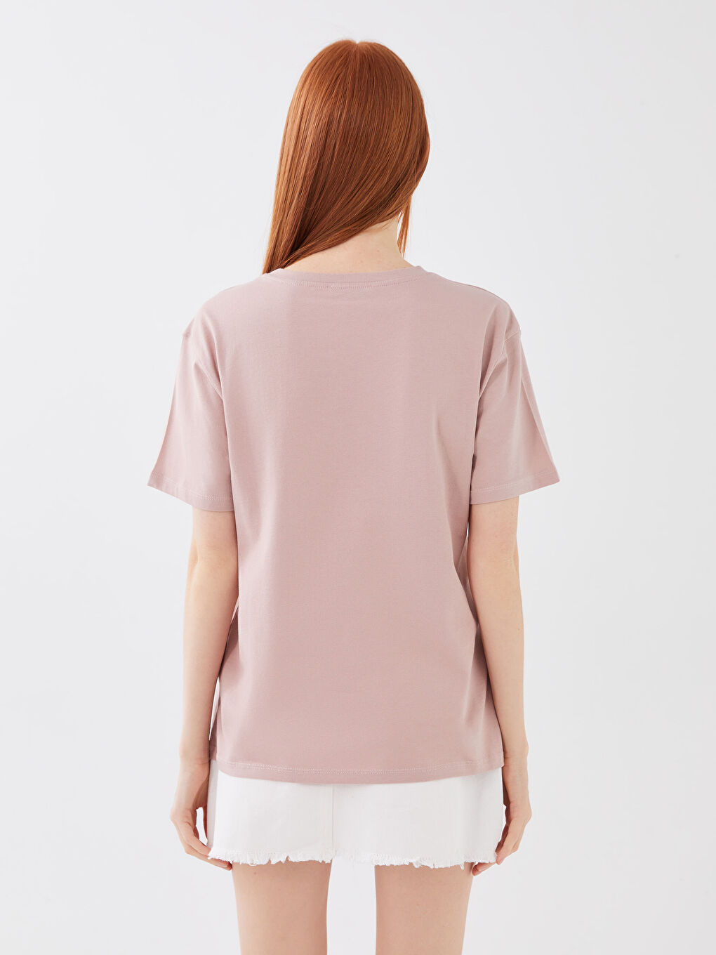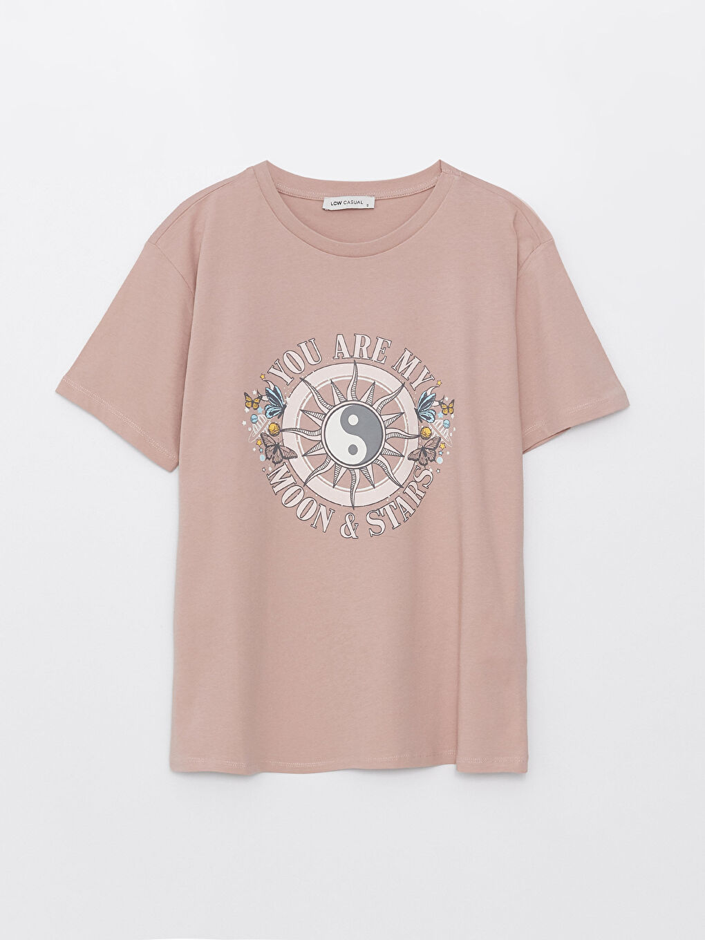 تی شرت زنانه آستین کوتاه چاپی یقه گرد ال سی وایکیکی