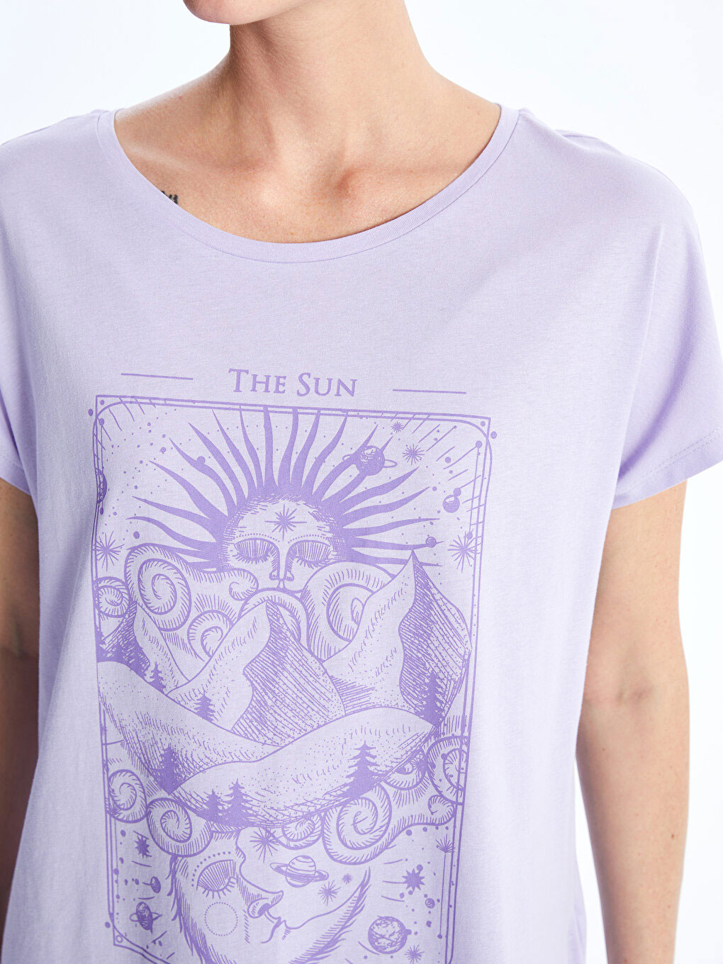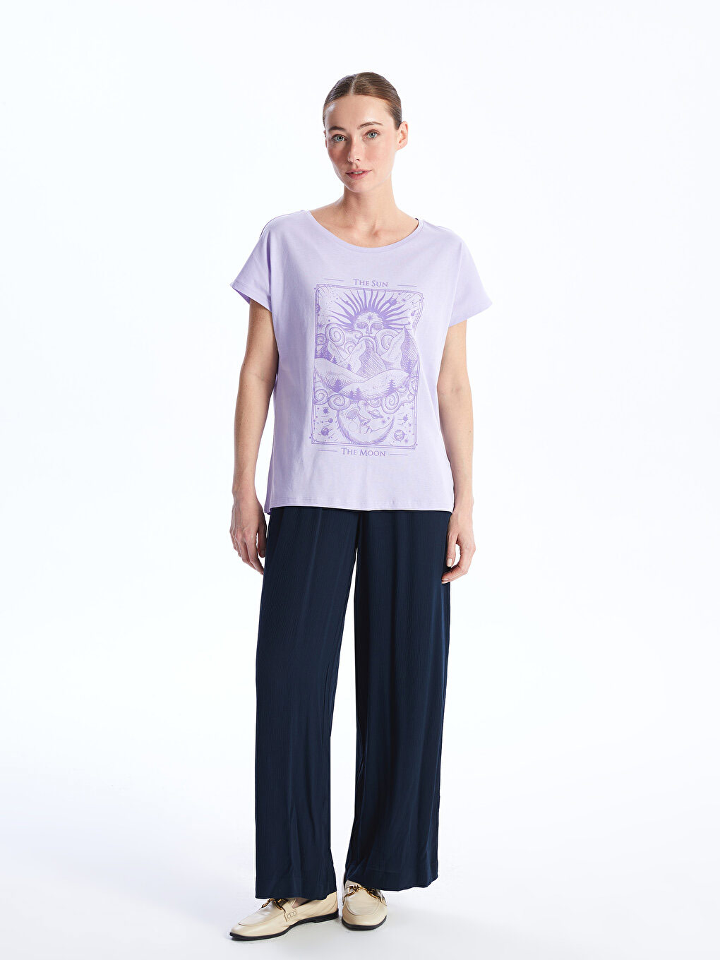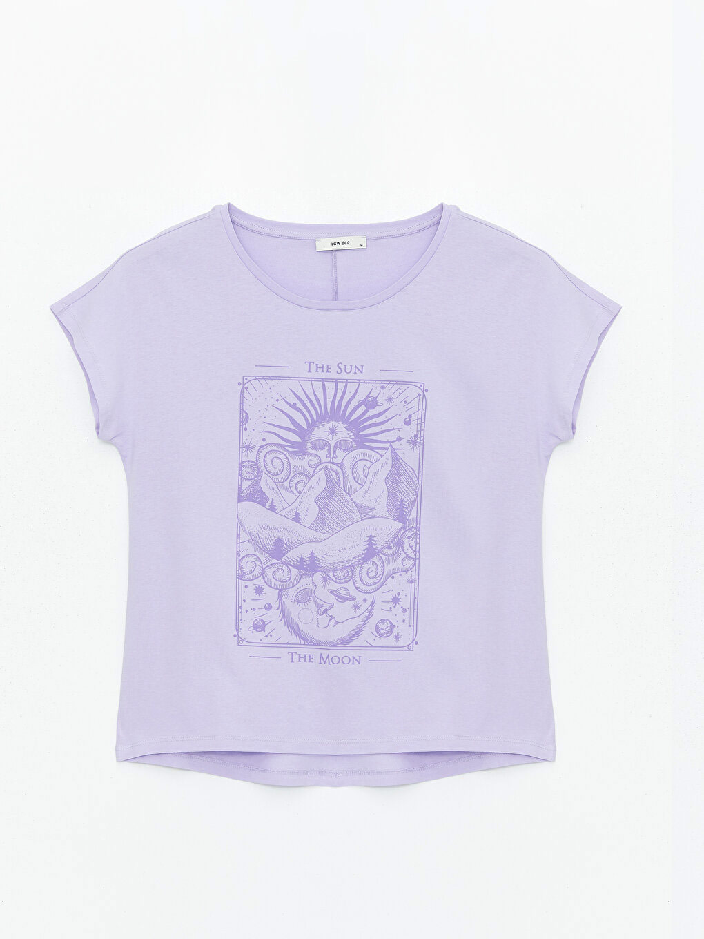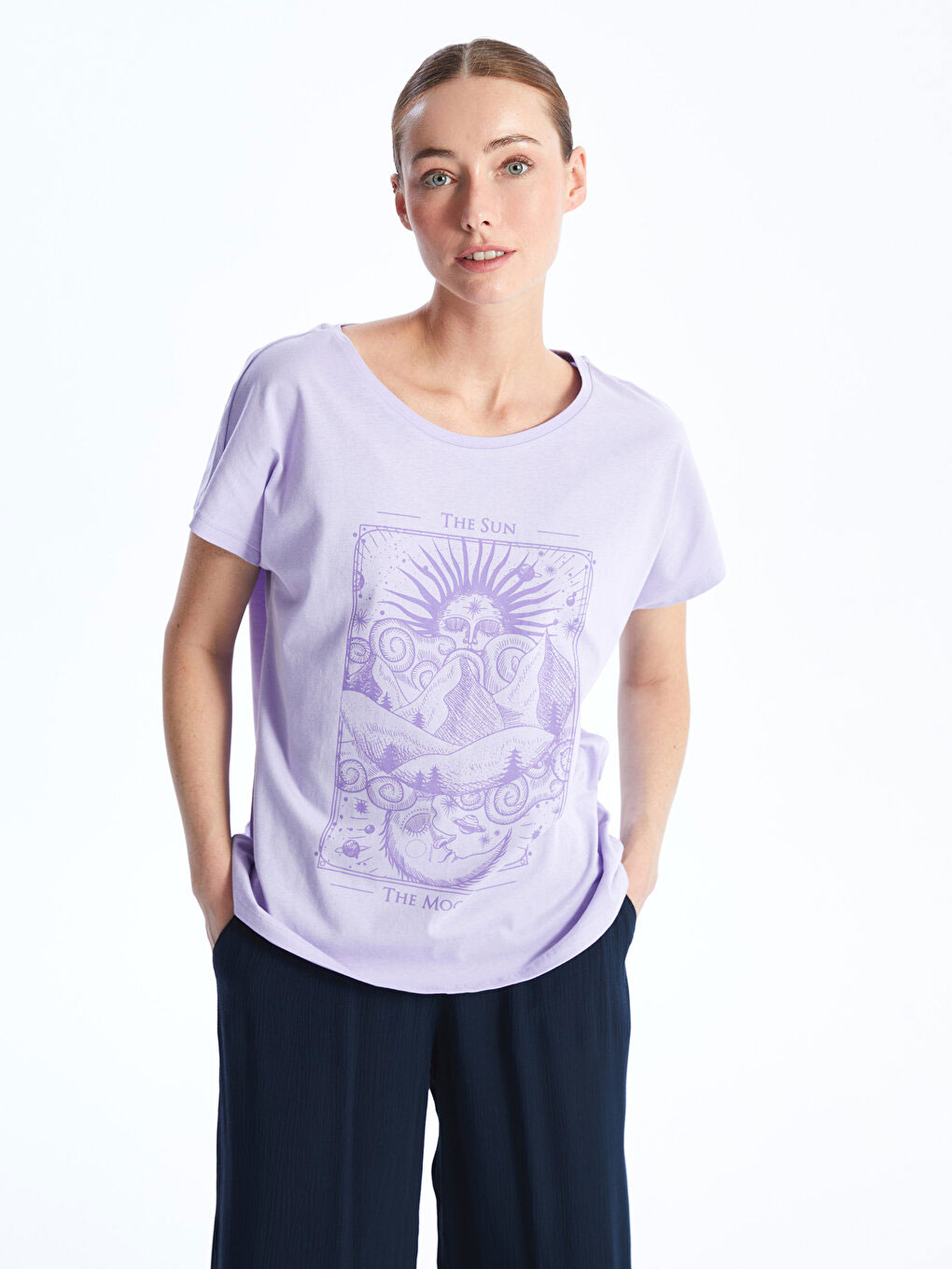 تی شرت زنانه آستین کوتاه چاپی یقه گرد ال سی وایکیکی
