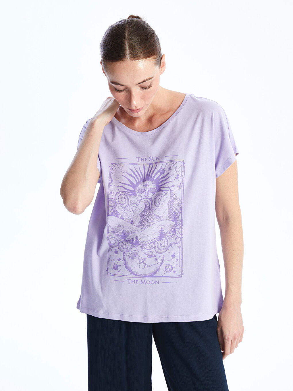 تی شرت زنانه آستین کوتاه چاپی یقه گرد اورسایز ال سی وایکیکی