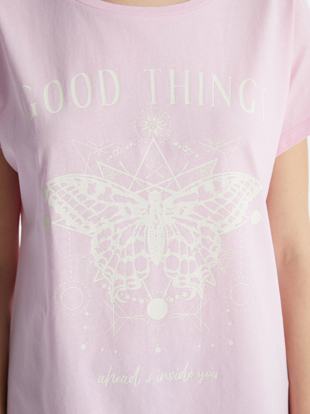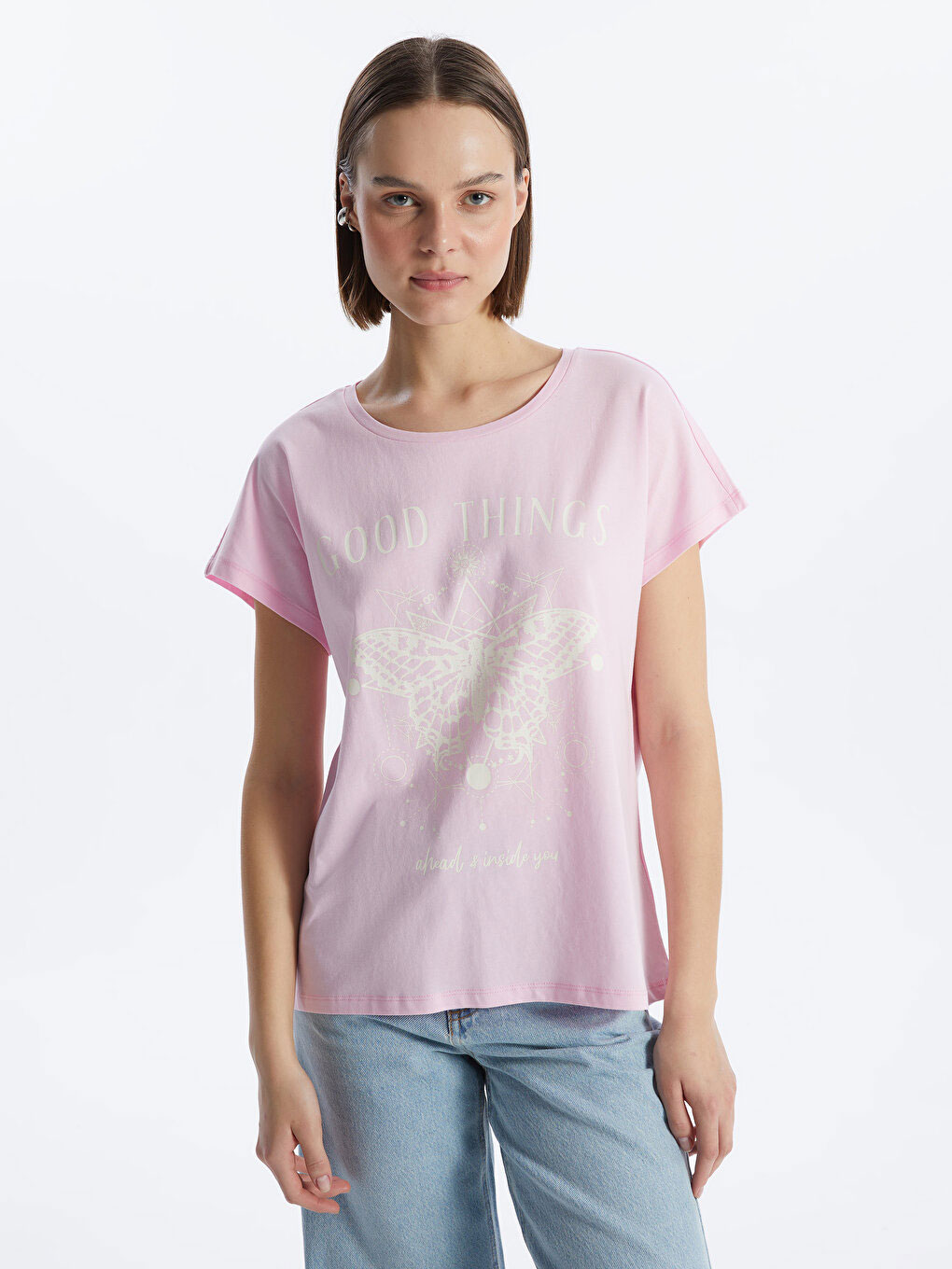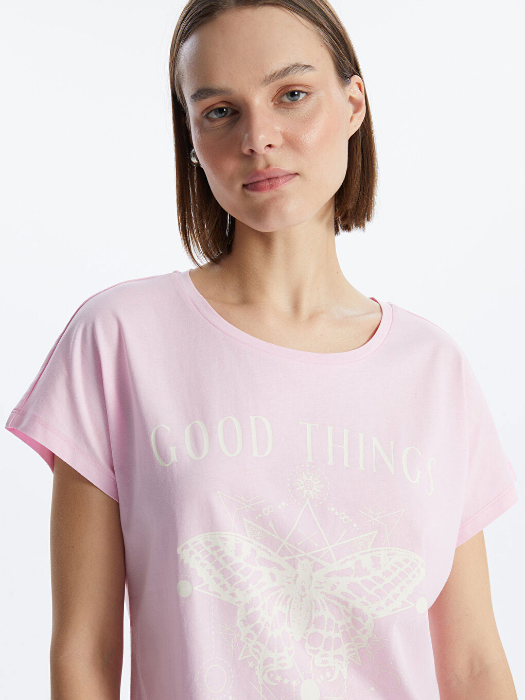 تی شرت زنانه آستین کوتاه چاپی یقه گرد ال سی وایکیکی