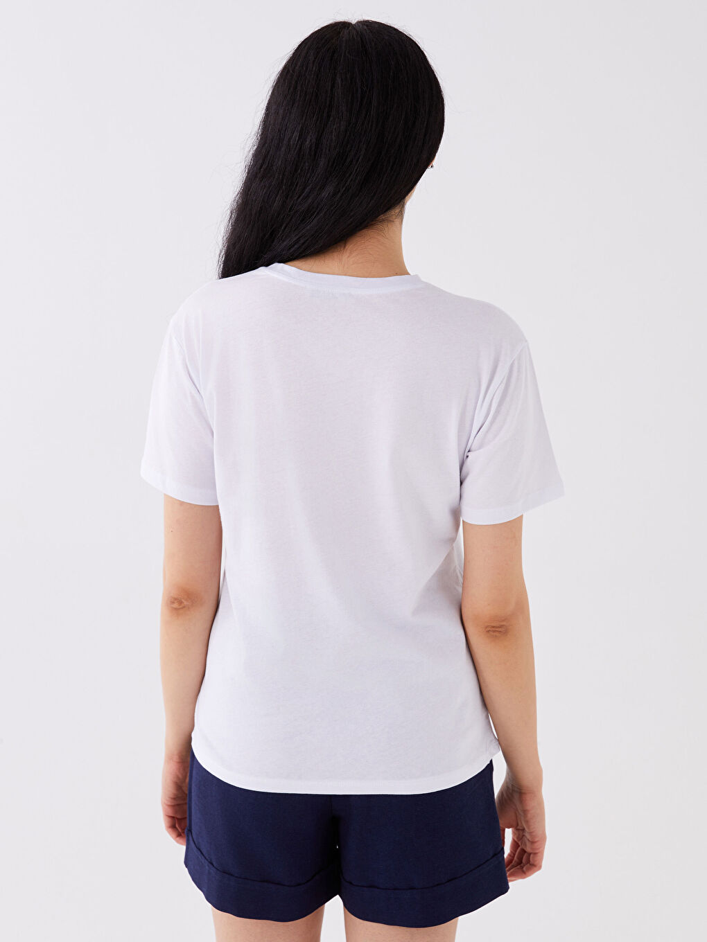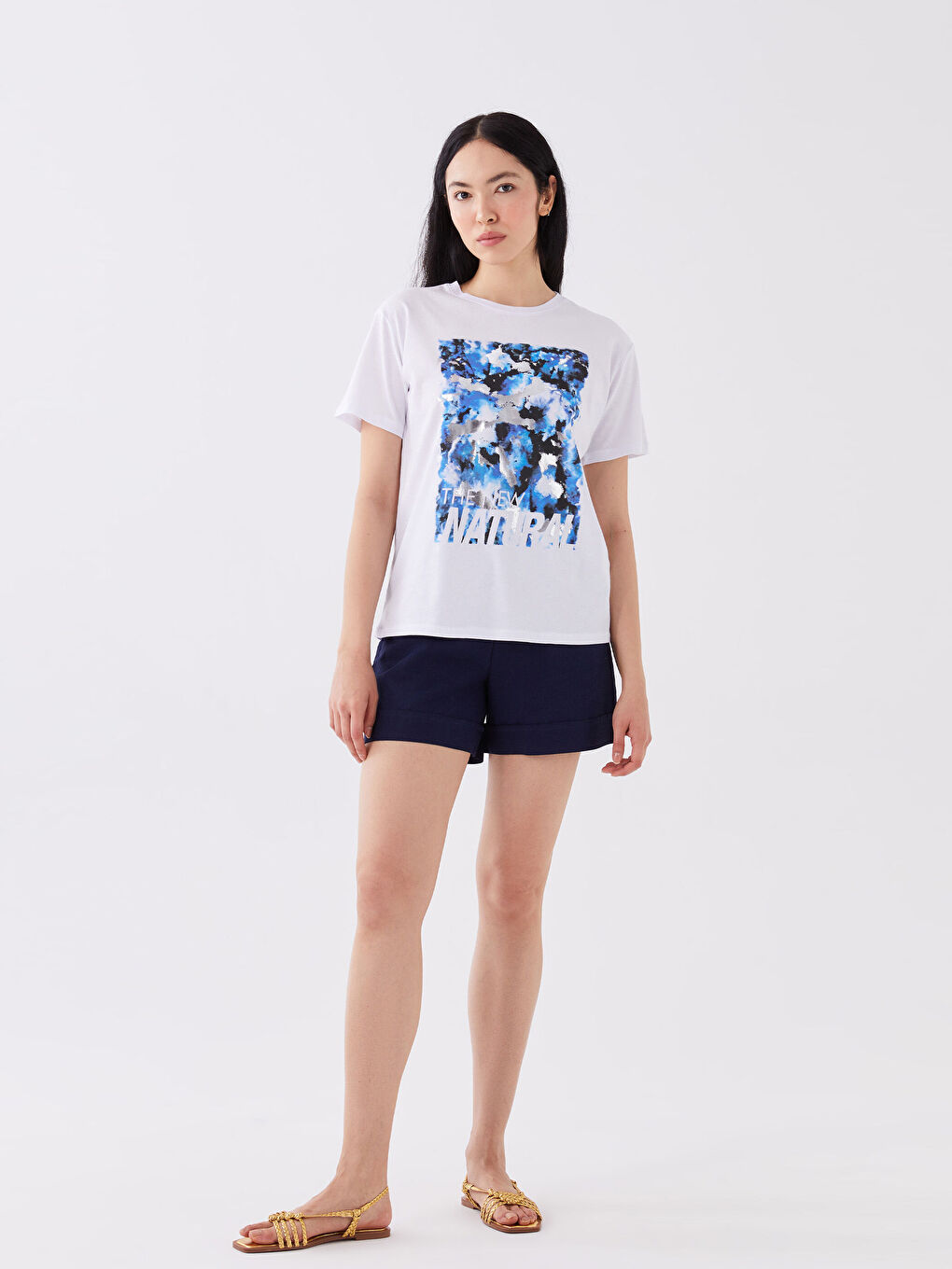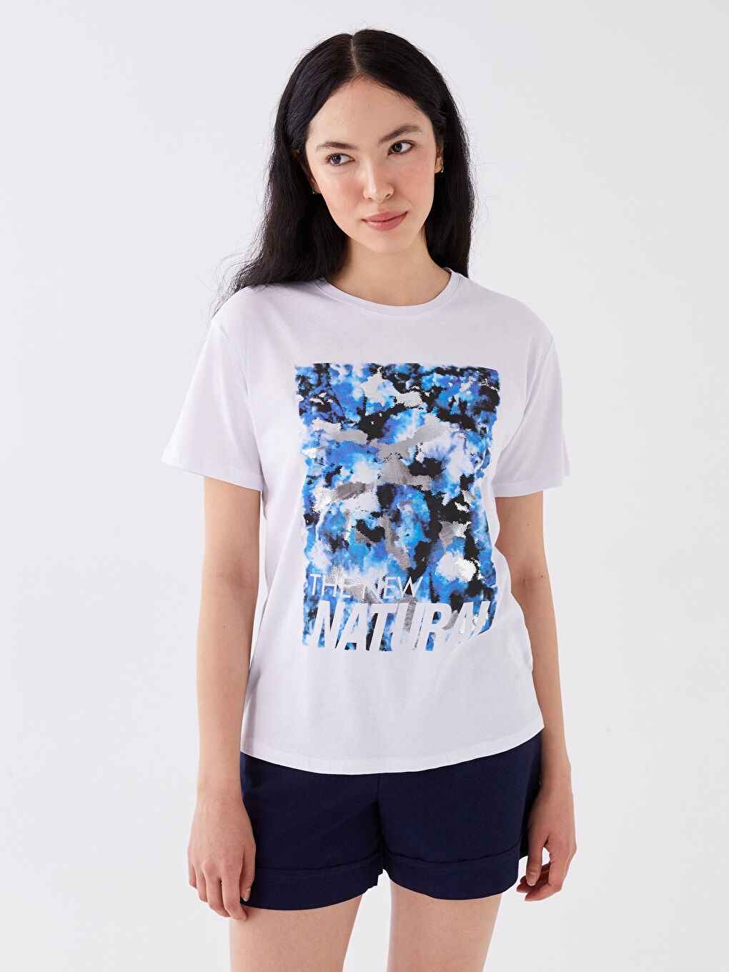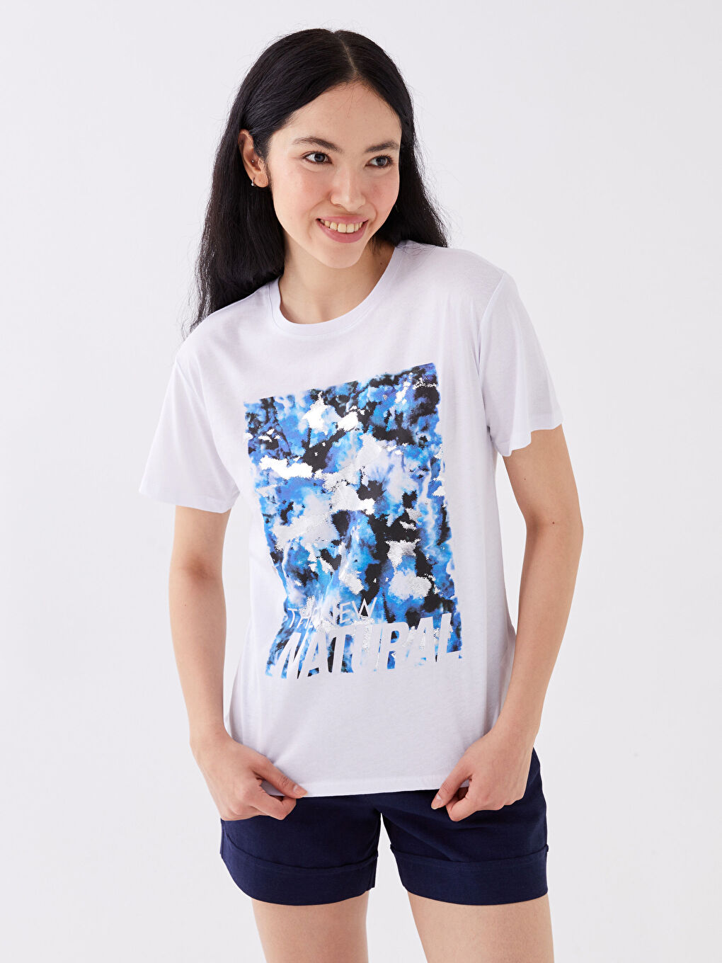تی شرت زنانه آستین کوتاه چاپی یقه گرد ال سی وایکیکی