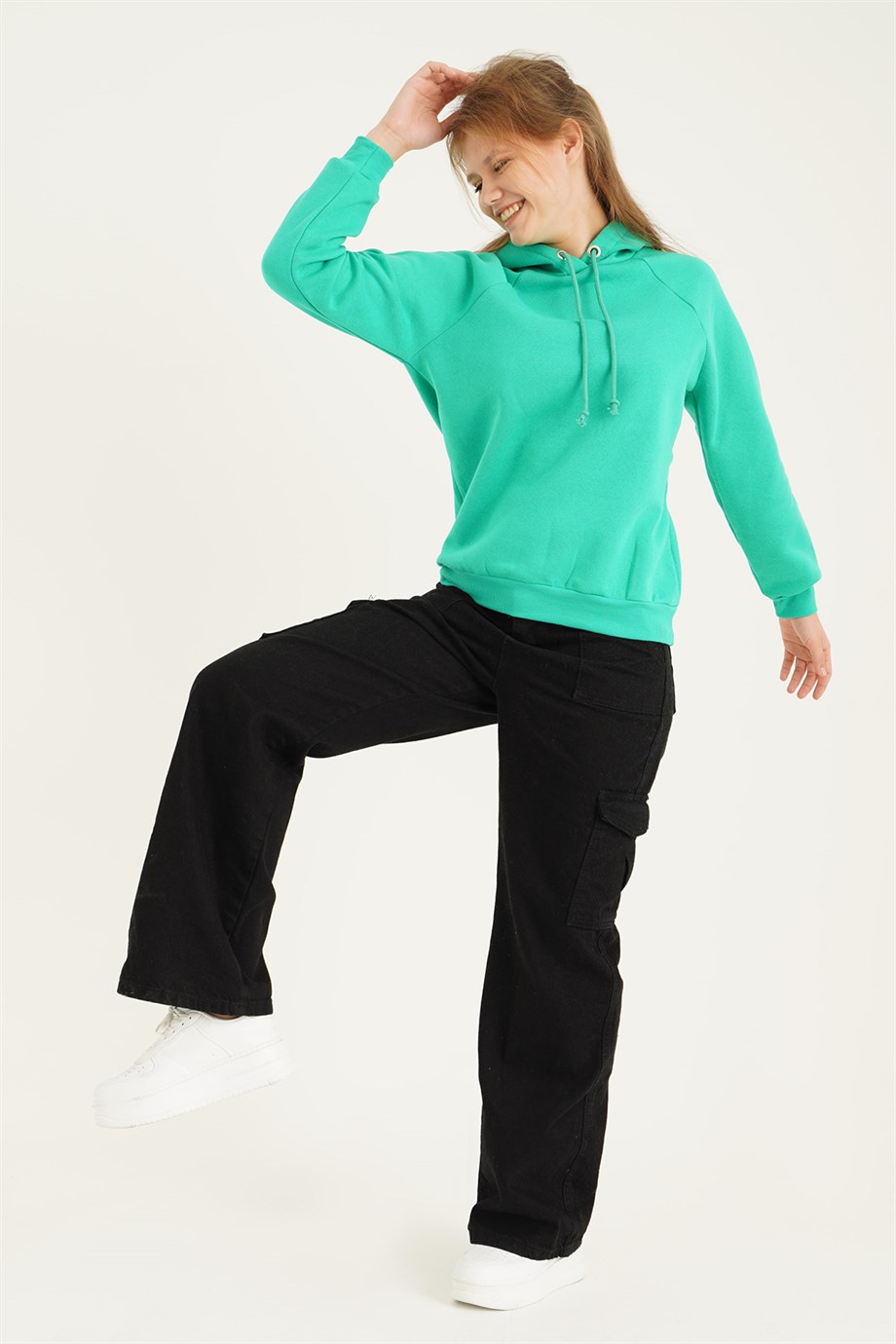 سویشرت زنانه نخی کلاه دار برند Lustrin، به صورت یقه گرد و کلاه دار، با طرح ساده و از جنس 100% پنبه و به صورت آستین بلند می باشد. قالب این محصول، استاندارد است.