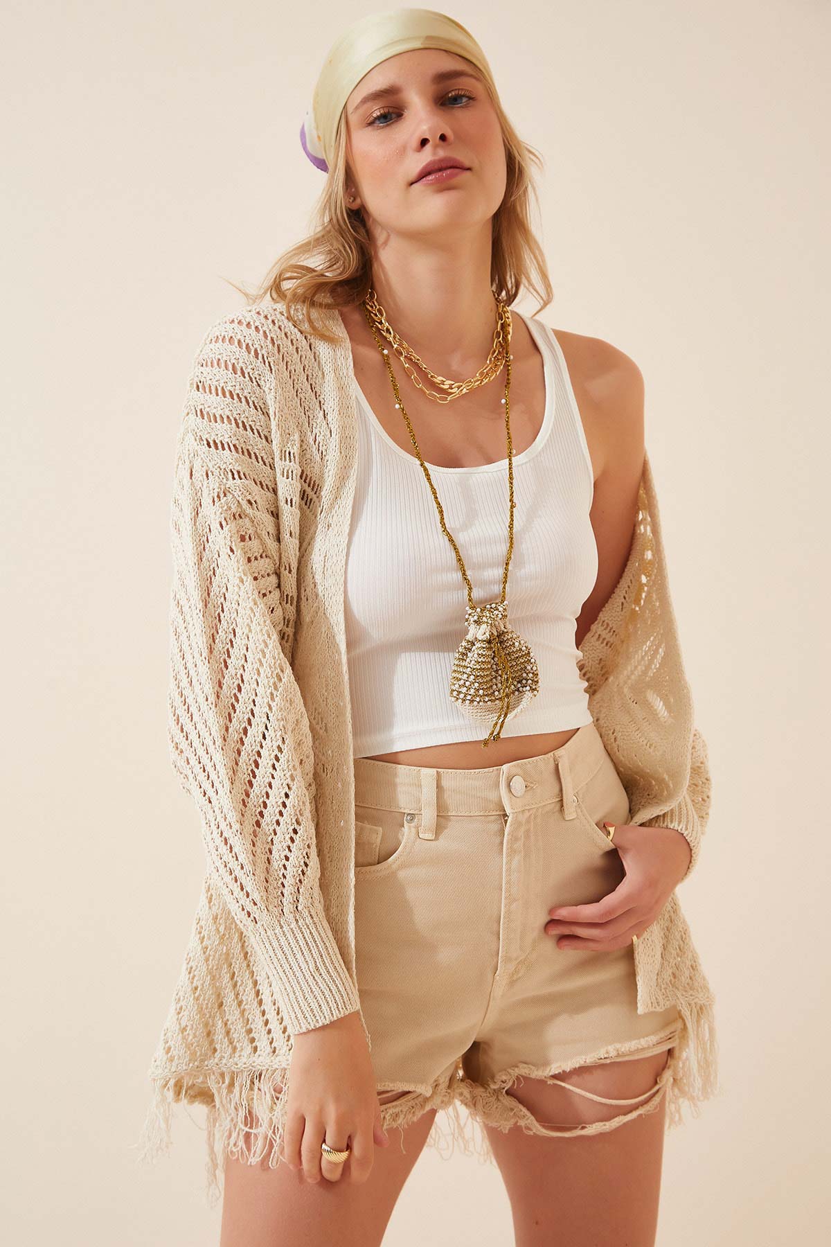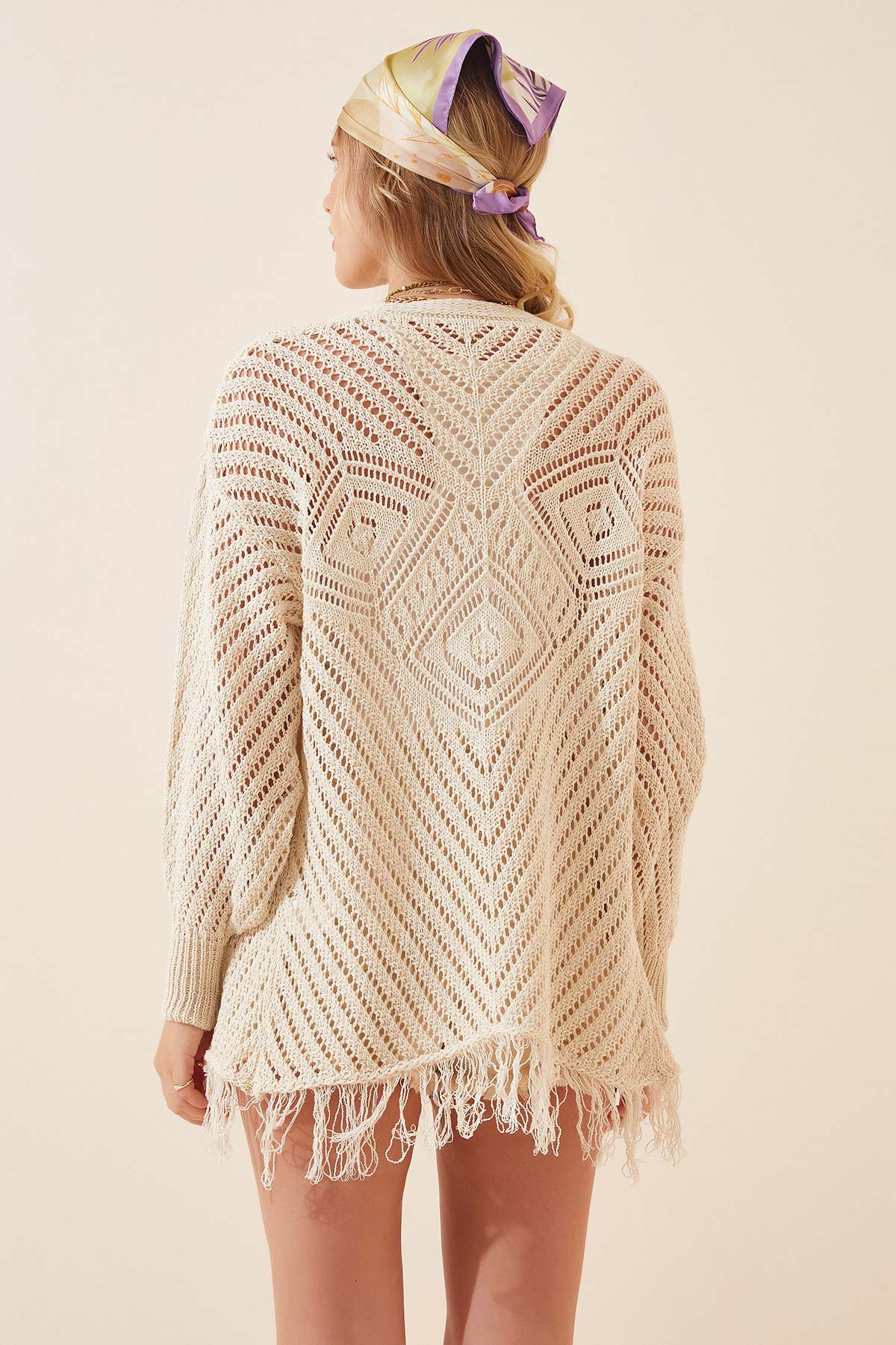 ژاکت بافتنی زنانه آستین بلند قلاب بافی فصلی برند Macharelbasic