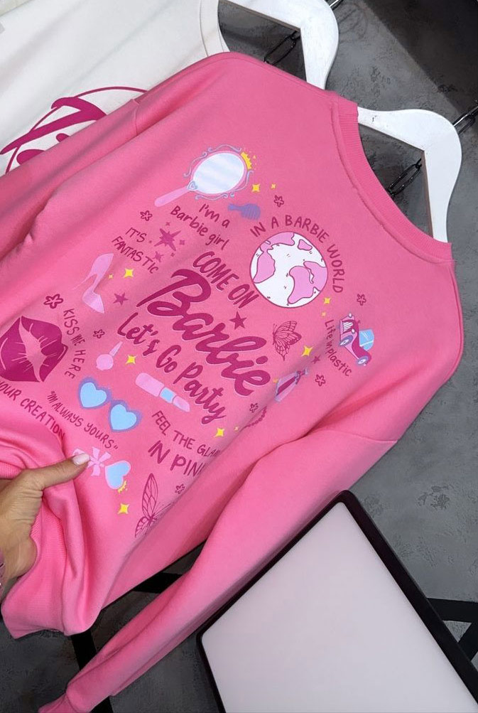پلیور زنانه نخی یقه گرد طرح باربی کد 1 New Fashion
